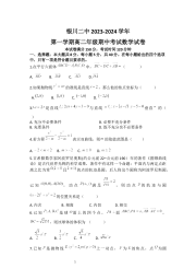 银川一中 2026 届高三年级第三次月考
